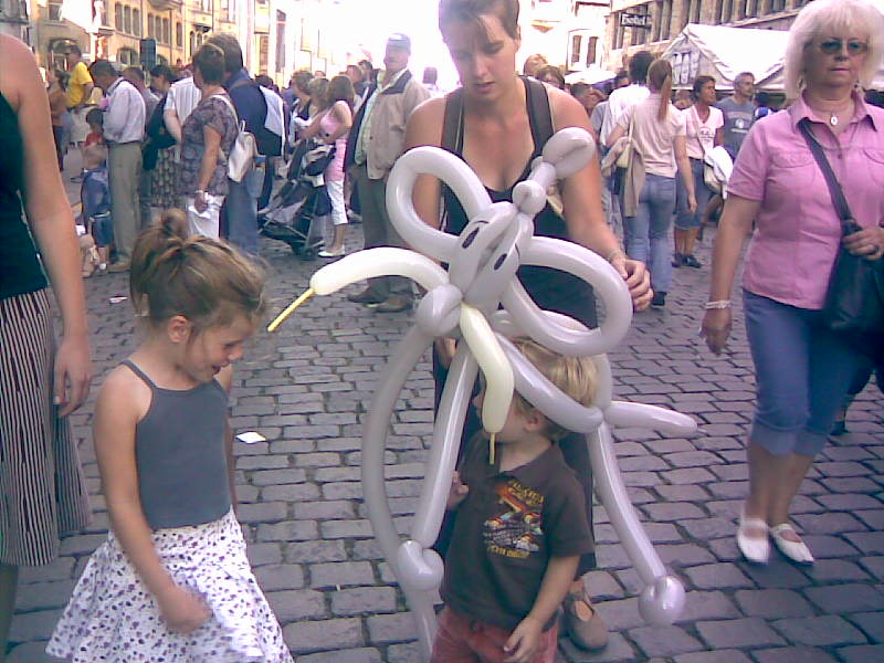 Straatartiest maakt een gigantische balonnen olifant:
