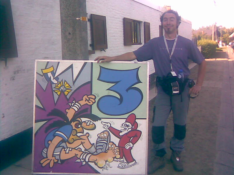 And the first thing we get is an invitation for next-years edition: 08-08-08. lots of people here allready. i'm participating in a testcase of the next generation scanning techniques: I have a chip attached to my shoe that gets automatically scanned at each post. If this goes well there will be no more manual barcode scanning next year.
